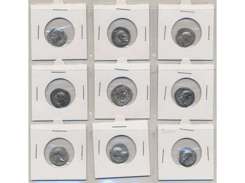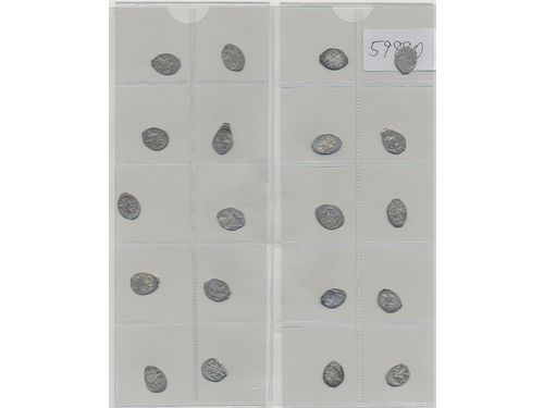Coins, Norway. Group of nine brakteats of Håkon Magnusson with opposing crown type. Several with damages or unidentifiable subtype. 1?-1+. Coins, Norway. Group of nine brakteats of Håkon Magnusson with opposing crown type. Several with damages or unidentifiable subtype. 1?-1+. Visa mindre