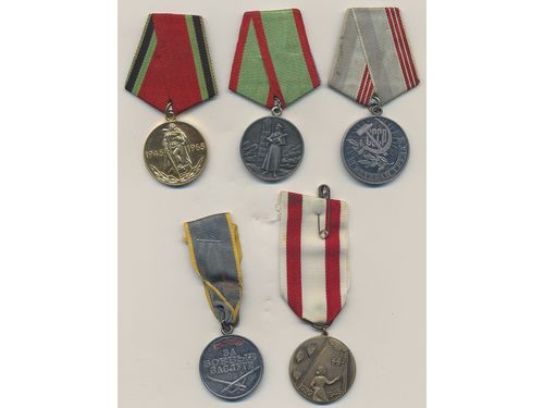 Medals, non-regal, Russia. One box with five medals, military, 1945–1965, mixed quality. Medals, non-regal, Russia. One box with five medals, military, 1945–1965, mixed quality. Visa mindre