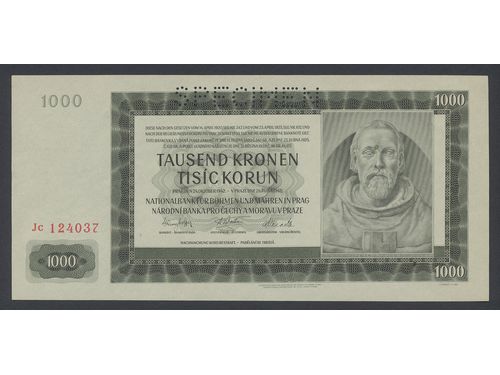 Banknotes, Czechoslovakia, Bohemia and Moravia. Small group of virtually uncirculated notes, all different and punch can.. Läs mer Banknotes, Czechoslovakia, Bohemia and Moravia. Small group of virtually uncirculated notes, all different and punch cancelled SPECIMEN. Pick 6-10s, 12s, 14s. XF-UNC. Visa mindre