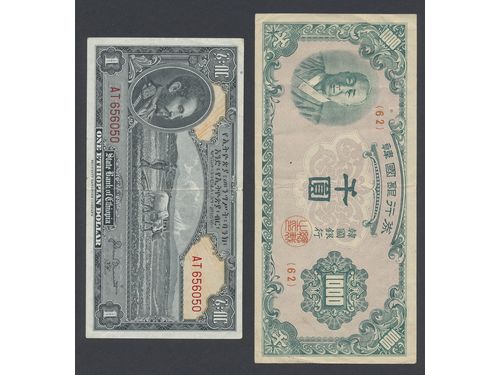 Banknotes, ALL WORLD, Asia. Two banknotes, one Ethiopian dollar VF and 1000 won Korea VF 1900s. Banknotes, ALL WORLD, Asia. Two banknotes, one Ethiopian dollar VF and 1000 won Korea VF 1900s. Visa mindre