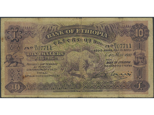Banknotes, Ethiopia. Pick 8, 10 thalers 1932. No: B/1 7711 in PMG as 15 choice fine. F. Banknotes, Ethiopia. Pick 8, 10 thalers 1932. No: B/1 7711 in PMG as 15 choice fine. F. Visa mindre