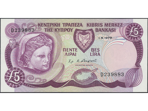 Banknotes, Cyprus. Pick 47, 5 pounds 1979. No: D 239883, 1/6 1979. UNC. Banknotes, Cyprus. Pick 47, 5 pounds 1979. No: D 239883, 1/6 1979. UNC. Visa mindre