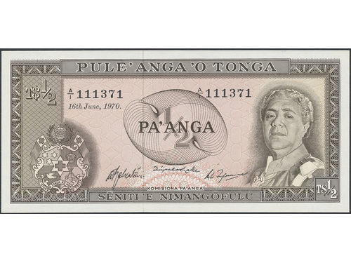 Banknotes, Tonga. Pick 13, ½ pa'anga 1970. No: A/I 111371, 16/6 1970. UNC. Banknotes, Tonga. Pick 13, ½ pa'anga 1970. No: A/I 111371, 16/6 1970. UNC. Visa mindre