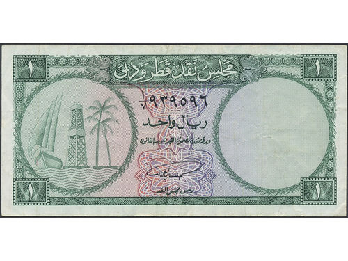 Banknotes, Qatar, Dubai. Pick 1, 1 riyal ND. 1960s. F. Banknotes, Qatar, Dubai. Pick 1, 1 riyal ND. 1960s. F. Visa mindre
