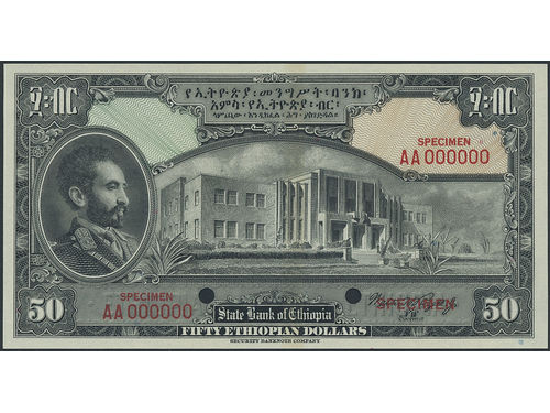 Banknotes, Ethiopia. Pick 15s2, 50 dollars ND (1945). Specimen note. Graded by PMG as uncirculated 65 EPQ. UNC. Banknotes, Ethiopia. Pick 15s2, 50 dollars ND (1945). Specimen note. Graded by PMG as uncirculated 65 EPQ. UNC. Visa mindre