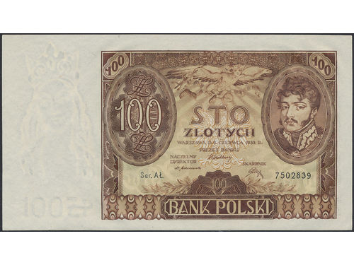 Banknotes, Poland. Pick 74a, 100 zlotych 1932. AL 7502839. Graded by PMG as uncirculated 65 EPQ. UNC. Banknotes, Poland. Pick 74a, 100 zlotych 1932. AL 7502839. Graded by PMG as uncirculated 65 EPQ. UNC. Visa mindre