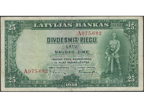 Banknotes, Latvia. Pick 21a, 25 latu 1938. A975682. VF. Banknotes, Latvia. Pick 21a, 25 latu 1938. A975682. VF. Visa mindre