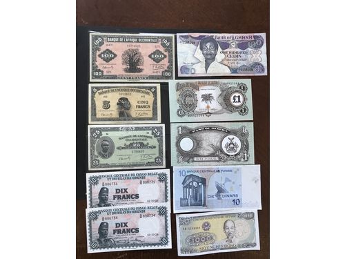 Banknotes, ALL WORLD. Album with 133 banknotes, 1900-2000s, a lot of africa, mixed quality. Banknotes, ALL WORLD. Album with 133 banknotes, 1900-2000s, a lot of africa, mixed quality. Visa mindre
