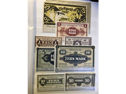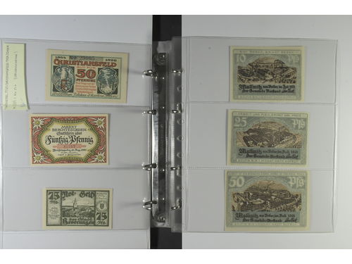 Banknotes, Germany, Reich. About 420 'Notgeld' from a large number of areas mostly 1914–1920 in stockbook + leaves. Plea.. Läs mer Banknotes, Germany, Reich. About 420 'Notgeld' from a large number of areas mostly 1914–1920 in stockbook + leaves. Please see scans at www.philea.se. Visa mindre