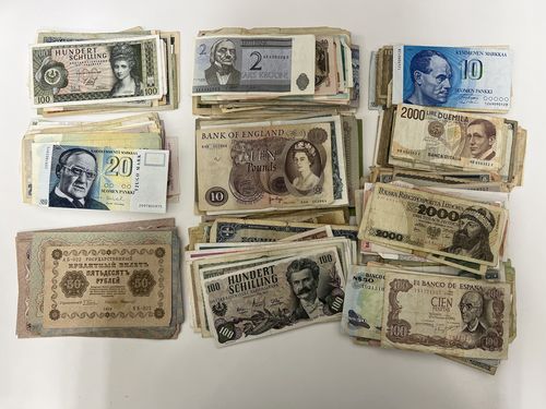 Banknotes, ALL WORLD. Banknotes. One box with 300 banknotes, mixed quality. Banknotes, ALL WORLD. Banknotes. One box with 300 banknotes, mixed quality. Visa mindre