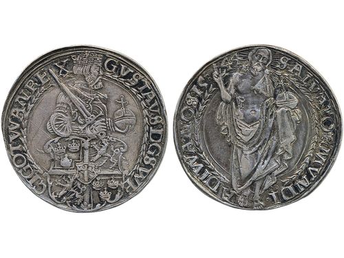 Coins, Sweden. Gustav Vasa, SM 164a, 1 daler 1544. 28.82 g. Svartsjö. "1544". Small edge nick and not disturbing graffit.. Läs mer Coins, Sweden. Gustav Vasa, SM 164a, 1 daler 1544. 28.82 g. Svartsjö. "1544". Small edge nick and not disturbing graffiti on obverse. Appealing patina. 1+. Visa mindre