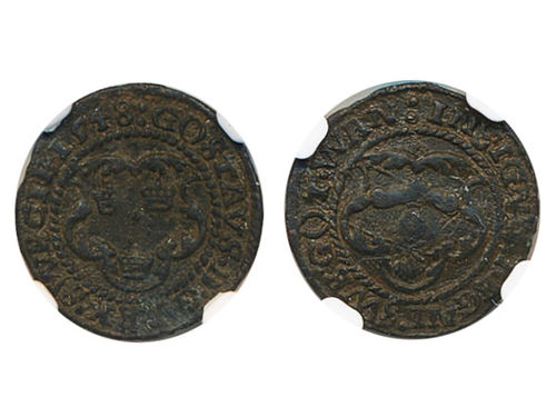 Coins, Sweden. Gustav Vasa, SM 221, 4 penningar 1548. 0.83 g. Svartsjö. Ex. L.E. Bruun Collection. 1+. Coins, Sweden. Gustav Vasa, SM 221, 4 penningar 1548. 0.83 g. Svartsjö. Ex. L.E. Bruun Collection. 1+. Visa mindre