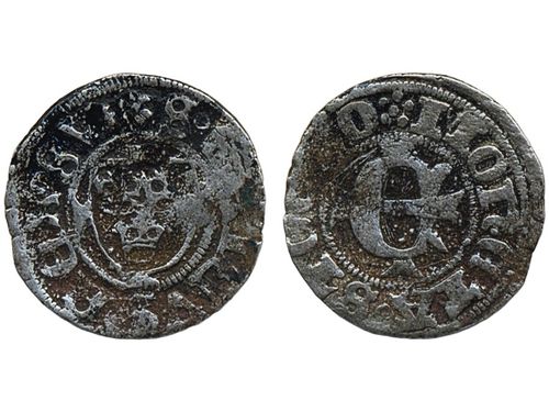 Coins, Sweden. Gustav Vasa, SM 101, 1 fyrk ND (1521–22). 0.99 g. Struck on order of Bishop Arwid Kyrk, legend with name.. Läs mer Coins, Sweden. Gustav Vasa, SM 101, 1 fyrk ND (1521–22). 0.99 g. Struck on order of Bishop Arwid Kyrk, legend with name of Henrik (patron of Åbo cathedral). Likely struck in Tallinn. Beautiful lustrous example. RR. SNY 10. SMB 274. 01. Visa mindre