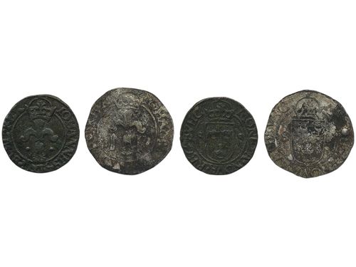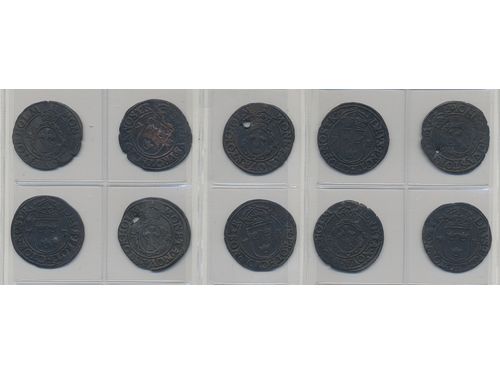 Coins, Sweden. Johan III, SM 75b, 2 öre 1573. Lot with ten examples in mixed condition (including three pierced). Please inspect! 1?-1+. Coins, Sweden. Johan III, SM 75b, 2 öre 1573. Lot with ten examples in mixed condition (including three pierced). Please inspect! 1?-1+. Visa mindre