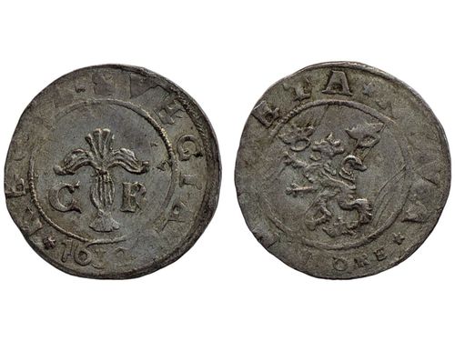 Coins, Sweden. Karl IX, SM 75a, 1 öre 1609. 1.47 g. Stockholm. 1+. Coins, Sweden. Karl IX, SM 75a, 1 öre 1609. 1.47 g. Stockholm. 1+. Visa mindre