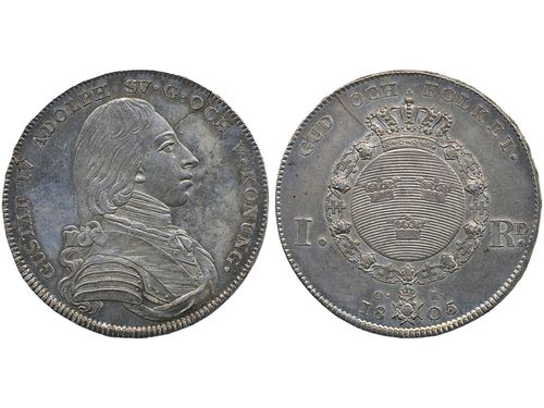 Coins, Sweden. Gustav IV Adolf, SM 28, 1 riksdaler 1805. 28.81 g. Stockholm. Planchet crack. Obverse lightly cleaned. 01. Coins, Sweden. Gustav IV Adolf, SM 28, 1 riksdaler 1805. 28.81 g. Stockholm. Planchet crack. Obverse lightly cleaned. 01. Visa mindre