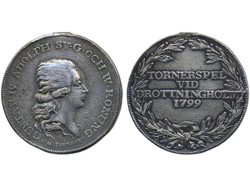 Medals, regal, Sweden. Gustav IV Adolf, Hild. 18, Tournament at Drottningholm 1799. Medal in silver, 30 mm, 13.0 g., by.. Läs mer Medals, regal, Sweden. Gustav IV Adolf, Hild. 18, Tournament at Drottningholm 1799. Medal in silver, 30 mm, 13.0 g., by C.G.Fehrman/L.O. Lunderberg. R. Has been mounted. Delzanno 20a. 1. Visa mindre
