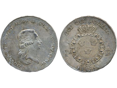 Coins, Sweden. Gustav IV Adolf, SM 22, 1 riksdaler 1793. 29.35 g. Stockholm. Minor adjustment marks, has probably been m.. Läs mer Coins, Sweden. Gustav IV Adolf, SM 22, 1 riksdaler 1793. 29.35 g. Stockholm. Minor adjustment marks, has probably been mounted, preserved lustre in fields. 01. Visa mindre