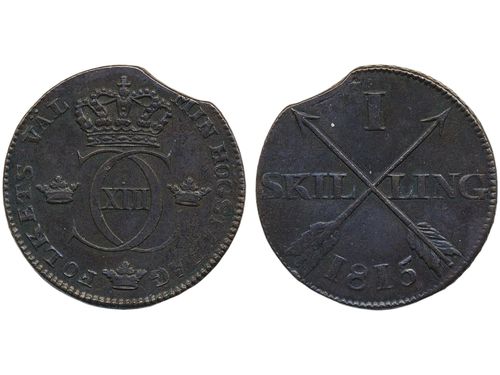 Coins, Sweden. Karl XIII, SM 37, 1 skilling 1815. 28.16 g. Avesta. 1+/01. Coins, Sweden. Karl XIII, SM 37, 1 skilling 1815. 28.16 g. Avesta. 1+/01. Visa mindre
