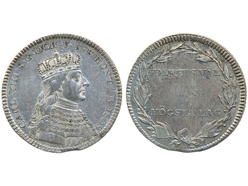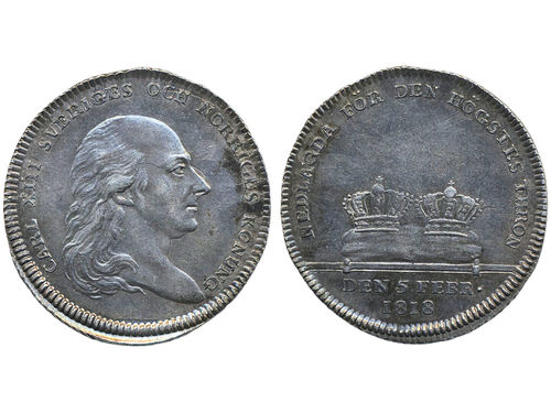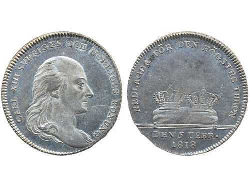 Coins, Sweden. Karl XIII, SM 34a, 1/3 riksdaler (largesse money) 1818. 9.61 g. Stockholm. 1+. Coins, Sweden. Karl XIII, SM 34a, 1/3 riksdaler (largesse money) 1818. 9.61 g. Stockholm. 1+. Visa mindre