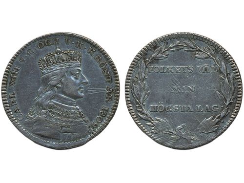 Coins, Sweden. Karl XIII, SM 31 a var, 1/3 riksdaler 1809. 5.98 g. Stockholm. Off-metal strike in white metal consisting.. Läs mer Coins, Sweden. Karl XIII, SM 31 a var, 1/3 riksdaler 1809. 5.98 g. Stockholm. Off-metal strike in white metal consisting of obverse and reverse originally glued together (now separated). 01/0. Visa mindre