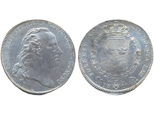 Coins, Sweden. Karl XIII, SM 11, 1 riksdaler 1814. 29.41 g. Stockholm. Partly weakly struck, adjustment marks, plachet f.. Läs mer Coins, Sweden. Karl XIII, SM 11, 1 riksdaler 1814. 29.41 g. Stockholm. Partly weakly struck, adjustment marks, plachet flaws. Somewhat patchy toning. 01. Visa mindre