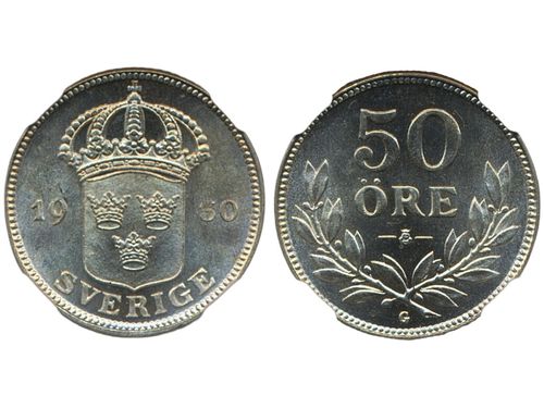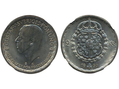 Coins, Sweden. Gustav V, MIS II.10, 2 kronor 1950. Graded by NGC as MS66. 0. See certification at NGC Coins, Sweden. Gustav V, MIS II.10, 2 kronor 1950. Graded by NGC as MS66. 0. See certification at NGC Visa mindre