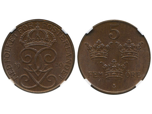 Coins, Sweden. Gustav V, MIS I.30, 5 öre 1939. Graded as MS65 BN by NGC. 0. See certification at NGC Coins, Sweden. Gustav V, MIS I.30, 5 öre 1939. Graded as MS65 BN by NGC. 0. See certification at NGC Visa mindre
