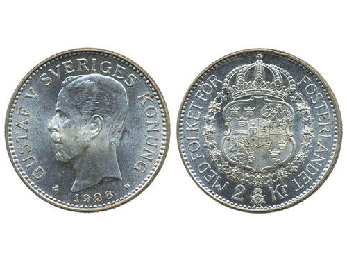 Coins, Sweden. Gustav V, MIS I.9, 2 kronor 1926. 01/0. Coins, Sweden. Gustav V, MIS I.9, 2 kronor 1926. 01/0. Visa mindre