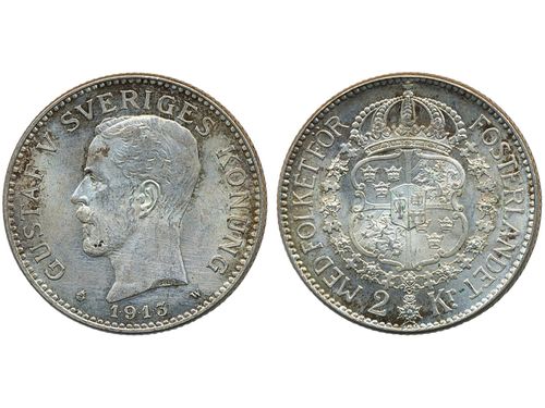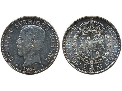Coins, Sweden. Gustav V, MIS I.5, 2 kronor 1914. 01. Coins, Sweden. Gustav V, MIS I.5, 2 kronor 1914. 01. Visa mindre