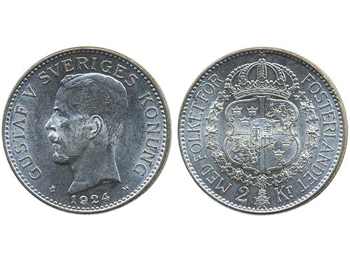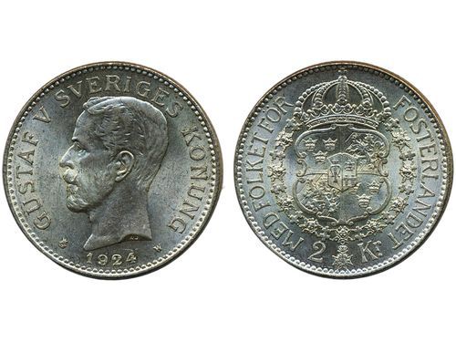 Coins, Sweden. Gustav V, MIS I.8, 2 kronor 1924. 01/0. Coins, Sweden. Gustav V, MIS I.8, 2 kronor 1924. 01/0. Visa mindre