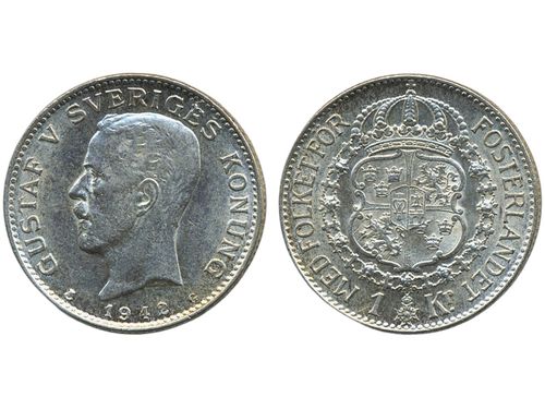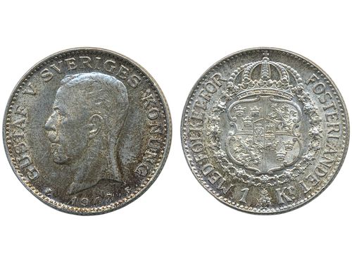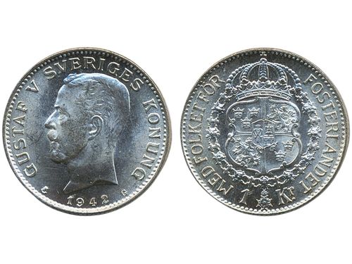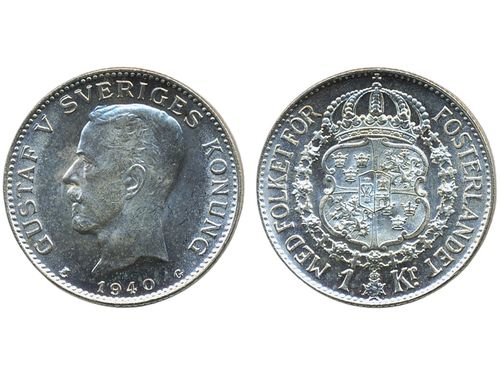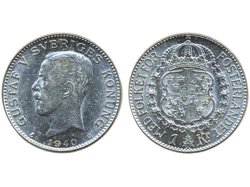 Coins, Sweden. Gustav V, MIS I.26a, 1 krona 1940. 01/0. Coins, Sweden. Gustav V, MIS I.26a, 1 krona 1940. 01/0. Visa mindre