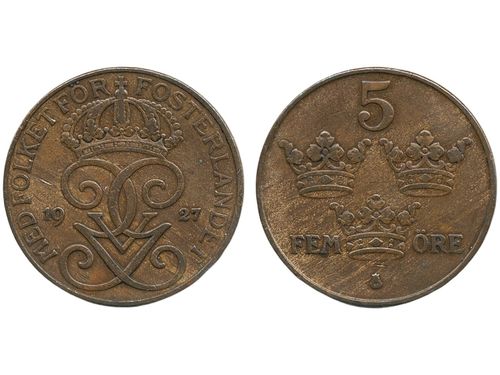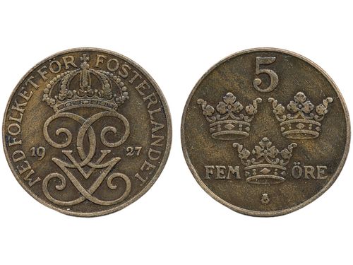 Coins, Sweden. Gustav V, MIS I.18, 5 öre 1927. 1. Coins, Sweden. Gustav V, MIS I.18, 5 öre 1927. 1. Visa mindre