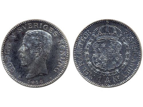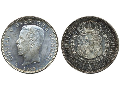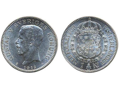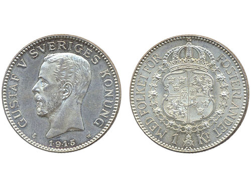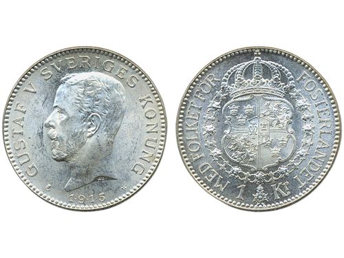 Coins, Sweden. Gustav V, MIS I.5c, 1 krona 1915. 01/0. Coins, Sweden. Gustav V, MIS I.5c, 1 krona 1915. 01/0. Visa mindre