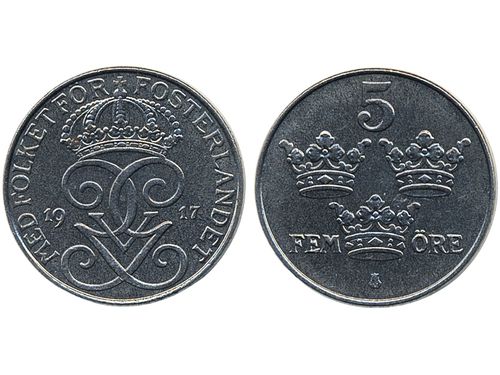 Coins, Sweden. Gustav V, MIS II.1, 5 öre 1917. 01. Coins, Sweden. Gustav V, MIS II.1, 5 öre 1917. 01. Visa mindre