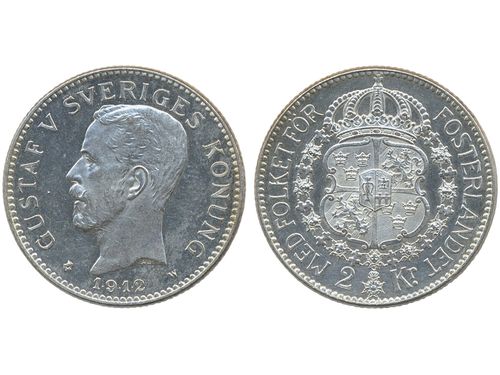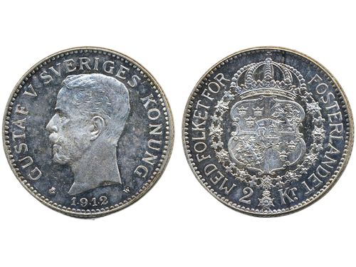 Coins, Sweden. Gustav V, MIS I.3, 2 kronor 1912. Lightly cleaned. 01. Coins, Sweden. Gustav V, MIS I.3, 2 kronor 1912. Lightly cleaned. 01. Visa mindre