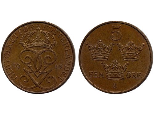 Coins, Sweden. Gustav V, MIS I.8a, 5 öre 1916/5. 01/0. Coins, Sweden. Gustav V, MIS I.8a, 5 öre 1916/5. 01/0. Visa mindre