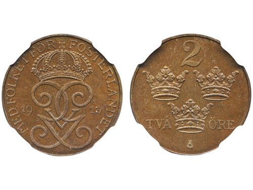 Coins, Sweden. Gustav V, MIS I.4, 2 öre 1913. Graded by NGC as MS65 BN. 01/0. See certification at NGC Coins, Sweden. Gustav V, MIS I.4, 2 öre 1913. Graded by NGC as MS65 BN. 01/0. See certification at NGC Visa mindre