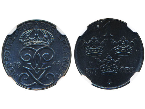 Coins, Sweden. Gustav V, MIS II.11c, 1 öre 1948. Graded MS65 by NGC. 0. See certification at NGC Coins, Sweden. Gustav V, MIS II.11c, 1 öre 1948. Graded MS65 by NGC. 0. See certification at NGC Visa mindre