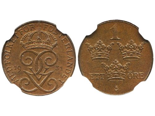 Coins, Sweden. Gustav V, MIS I.21, 1 öre 1931. Graded MS65 by NGC. 01/0. See certification at NGC Coins, Sweden. Gustav V, MIS I.21, 1 öre 1931. Graded MS65 by NGC. 01/0. See certification at NGC Visa mindre