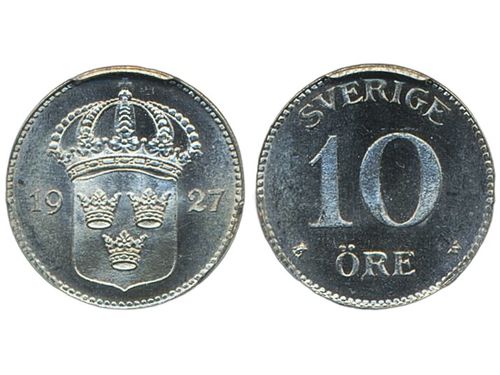 Coins, Sweden. Gustav V, MIS I.10, 10 öre 1927. Graded MS65 by PCGS. 01/0. See certification at PCGS Coins, Sweden. Gustav V, MIS I.10, 10 öre 1927. Graded MS65 by PCGS. 01/0. See certification at PCGS Visa mindre