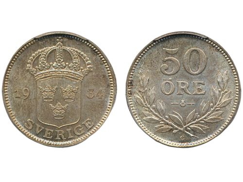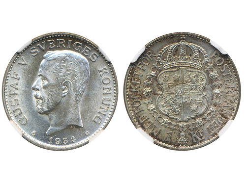 Coins, Sweden. Gustav V, MIS I.20, 1 krona 1934. Graded MS63 by NGC. 01/0. See certification at NGC Coins, Sweden. Gustav V, MIS I.20, 1 krona 1934. Graded MS63 by NGC. 01/0. See certification at NGC Visa mindre