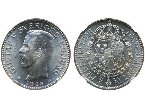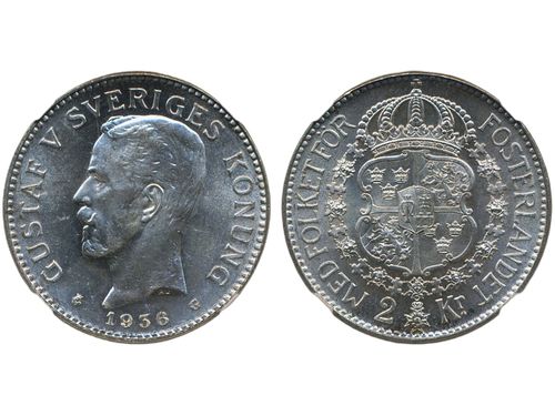 Coins, Sweden. Gustav V, MIS I.16, 2 kronor 1936. Graded MS64+ by NGC. 01/0. See certification at NGC Coins, Sweden. Gustav V, MIS I.16, 2 kronor 1936. Graded MS64+ by NGC. 01/0. See certification at NGC Visa mindre