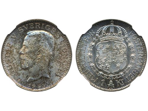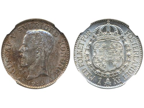 Coins, Sweden. Gustav V, MIS I.19, 1 krona 1933. Graded as MS65 – only three graded higher by NGC. 01/0. See certification at NGC Coins, Sweden. Gustav V, MIS I.19, 1 krona 1933. Graded as MS65 – only three graded higher by NGC. 01/0. See certification at NGC Visa mindre
