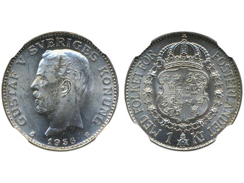 Coins, Sweden. Gustav V, MIS I.16, 2 kronor 1936. Graded MS64 by NGC,. 01/0. See certification at NGC Coins, Sweden. Gustav V, MIS I.16, 2 kronor 1936. Graded MS64 by NGC,. 01/0. See certification at NGC Visa mindre