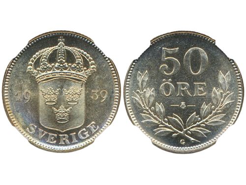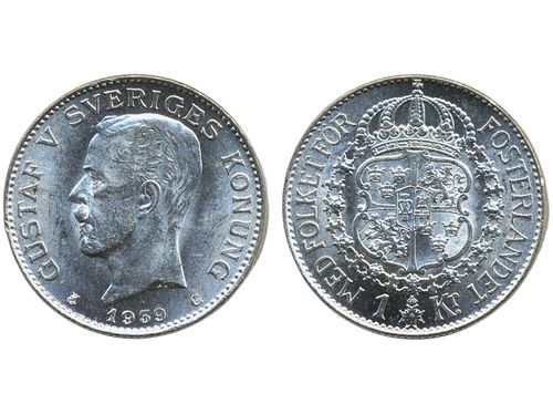 Coins, Sweden. Gustav V, MIS I.25c, 1 krona 1939. Large G. 01/0. Coins, Sweden. Gustav V, MIS I.25c, 1 krona 1939. Large G. 01/0. Visa mindre