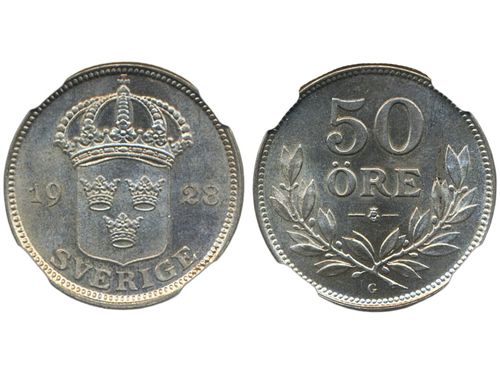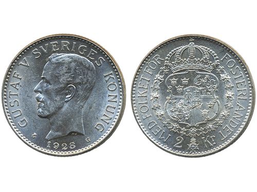 Coins, Sweden. Gustav V, MIS I.10, 2 kronor 1928. 01/0. Coins, Sweden. Gustav V, MIS I.10, 2 kronor 1928. 01/0. Visa mindre