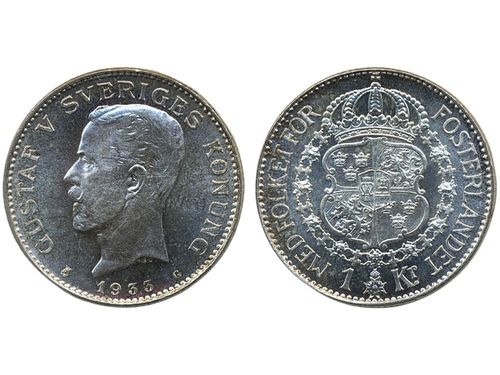 Coins, Sweden. Gustav V, MIS I.19, 1 krona 1933. 7.5 g silver. 0. Coins, Sweden. Gustav V, MIS I.19, 1 krona 1933. 7.5 g silver. 0. Visa mindre