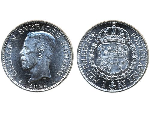 Coins, Sweden. Gustav V, MIS I.20, 1 krona 1934. Mirror-like surfaces. 0. Coins, Sweden. Gustav V, MIS I.20, 1 krona 1934. Mirror-like surfaces. 0. Visa mindre