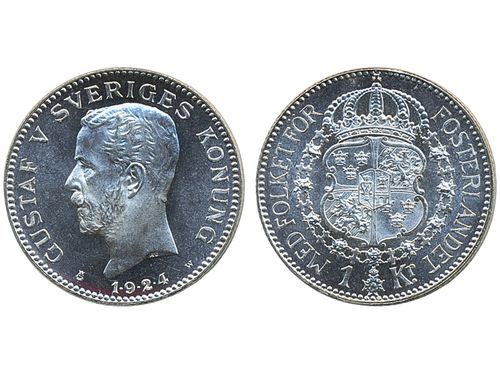 Coins, Sweden. Gustav V, MIS I.9b, 1 krona 1924. 01/0. Coins, Sweden. Gustav V, MIS I.9b, 1 krona 1924. 01/0. Visa mindre